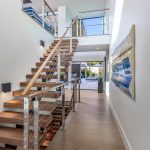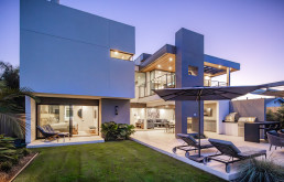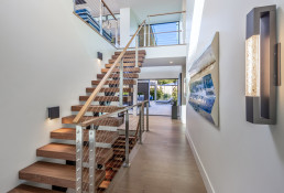 Horizon House celebrates the seamless indoor-outdoor flow and panoramic horizon views. This striking contemporary residence in Carlsbad seamlessly blends coastal elegance with clean architectural lines. Designed to maximize natural light and ocean views, the home features expansive glass walls, open-concept living spaces, and a harmonious mix of warm wood tones and sleek finishes. The staircase creates a floating sculptural centerpiece, while the gourmet kitchen and outdoor entertaining areas invite effortless indoor-outdoor living. Every detail—from the minimalist façade to the thoughtfully curated interiors—reflects a modern coastal lifestyle that is both sophisticated and inviting.